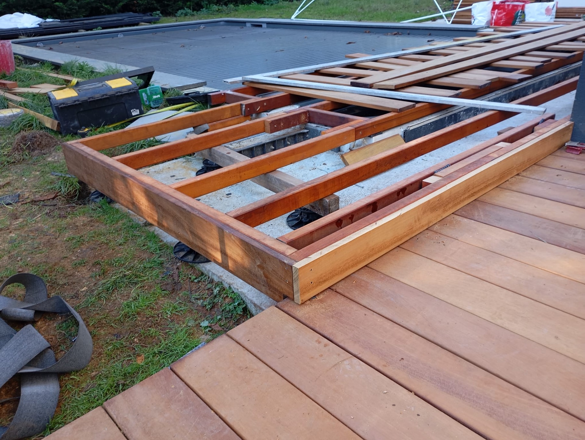 La qualité de la pose est déterminante pour la longévité de la terrasse. Une installation professionnelle garantit une structure solide, un alignement précis et une finition soignée.